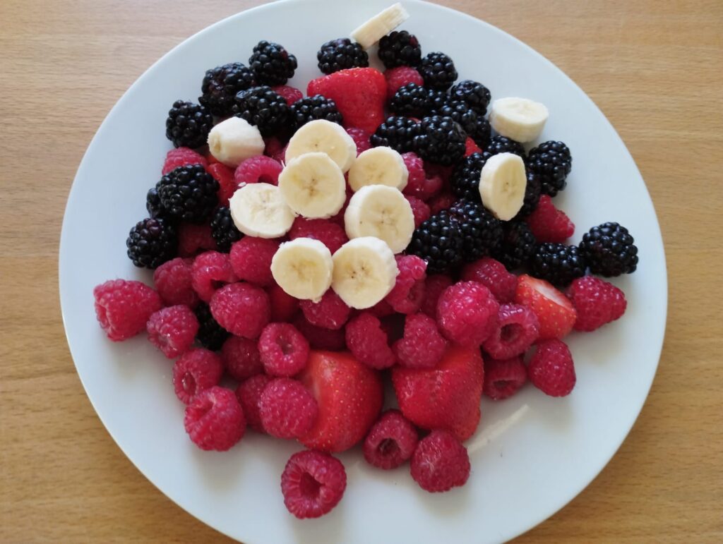 - Sliced fresh fruits: bananas, berries, pineapple, mango